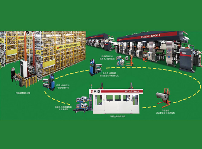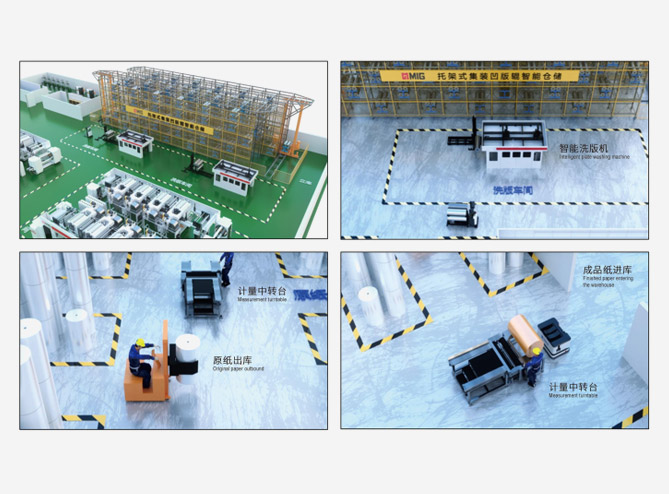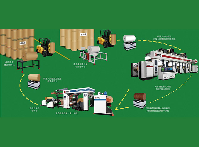 Koristerullapaperin syväpainatuksen varastosta varastoon -logistiikkajärjestelmä on koko logistiikkaprosessi, jossa perusrullapaperi siirretään varastosta painokoneeseen AGV:llä ja valmis koristerullapaperi siirretään lopputuotteen varastoon tulostuksen, uudelleenrullauksen.pakkauksen ja mittauksen jälkeen.